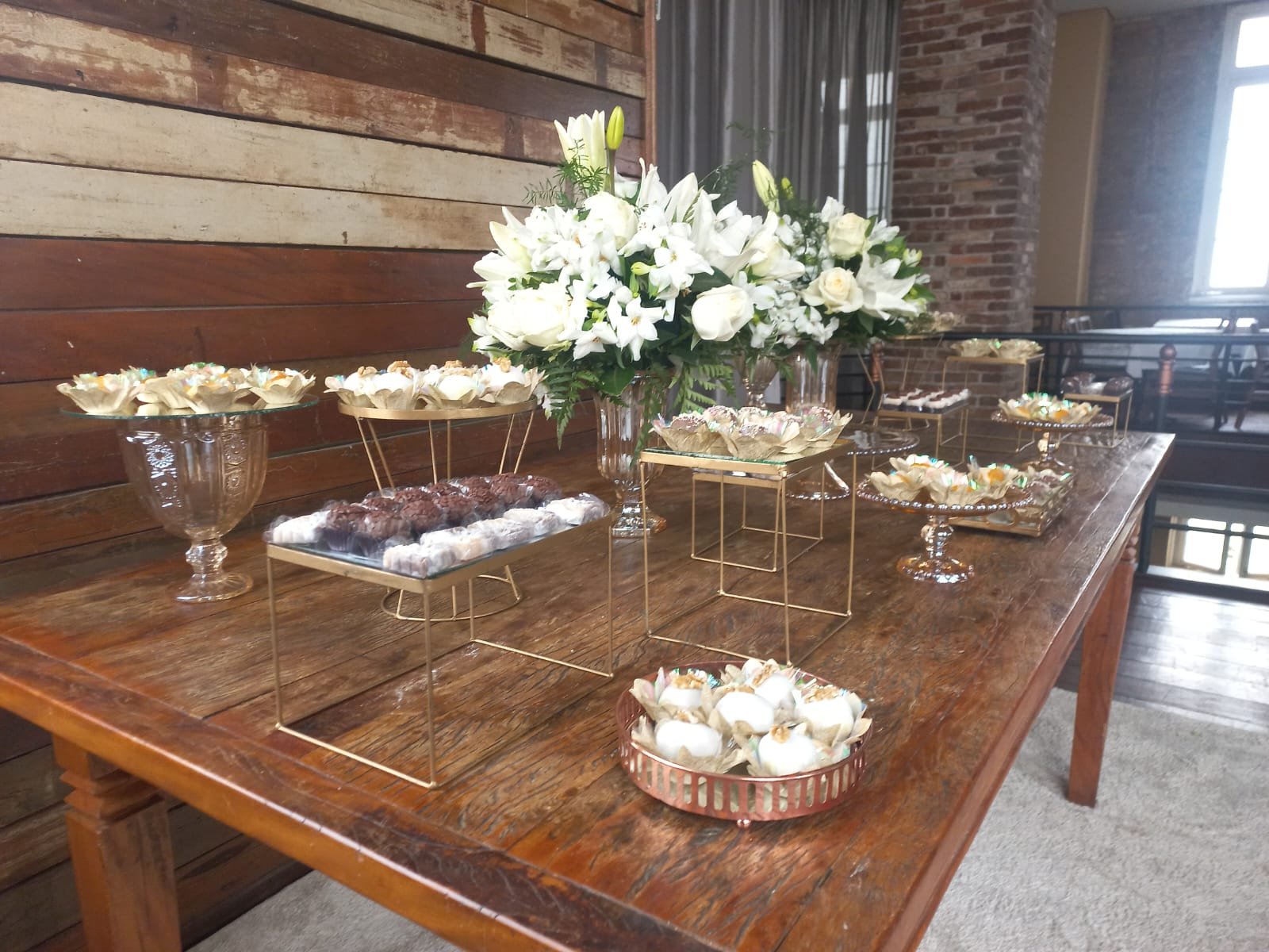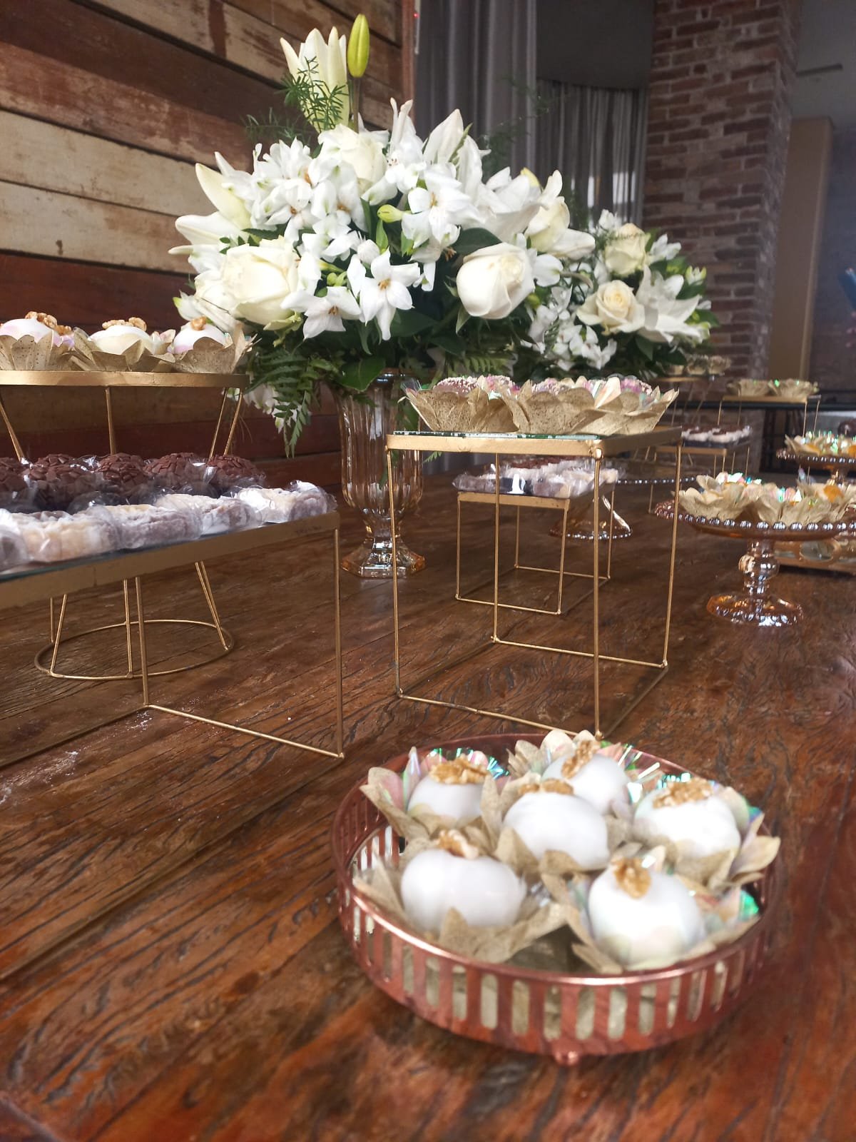 Kit Pegue e Monte Mesa de Doces – âmbar e dourado com flores